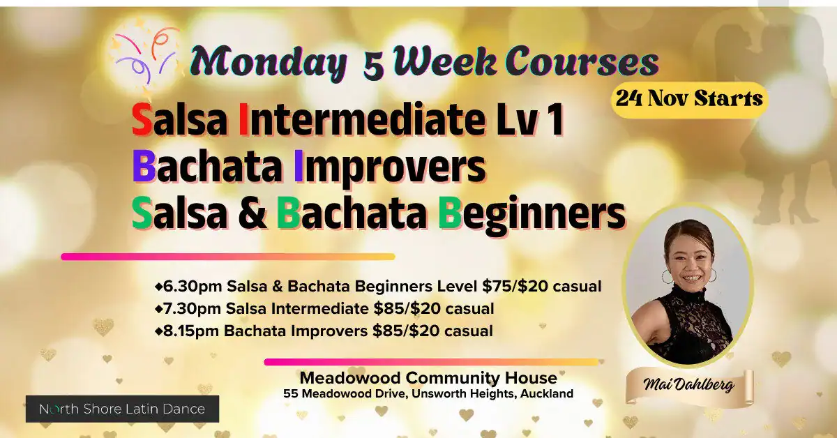 Teacher: Mai Dahlberg is a profoundly experienced dancer and teacher. Specialising in Street Latin dances like Salsa On1 & On2, NY Mambo and Cha Cha Cha (Boogaloo), Pachanga, Bachata, Merengue and other Latin styles. Mai has trained and performed internationally, including New York and Australia. She has won numerous titles in both New Zealand and Australia.